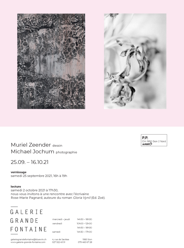 Galerie Grande Fontaine, Sion, Schweiz 25.9. bis 16.10.2021 mit Muriel Zeender 4, rue de Savièse 1950 Sion 027 322 43 51 078 691 08 17 / 079 460 67 28 https://www.galerie-grande-fontaine.ch/michael-jochum ​